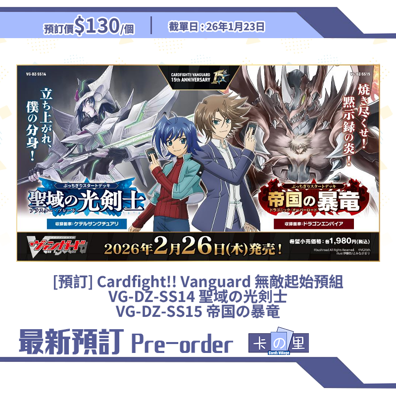 [預訂] Cardfight!! Vanguard 無敵起始預組 VG-DZ-SS14 聖域の光剣士 VG-DZ-SS15 帝国の暴竜
