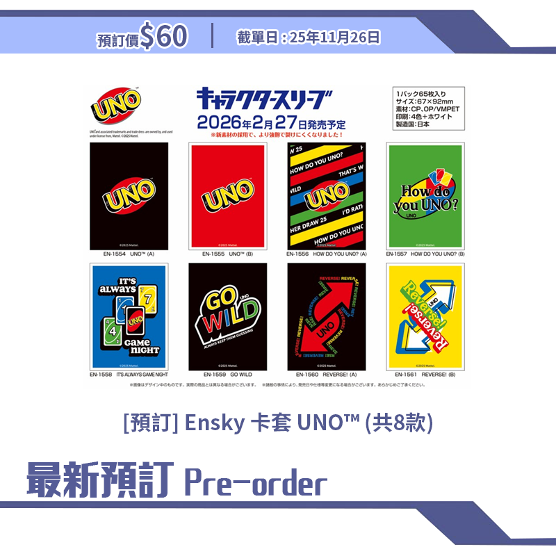 [預訂] Ensky 卡套 UNO™ (共8款)