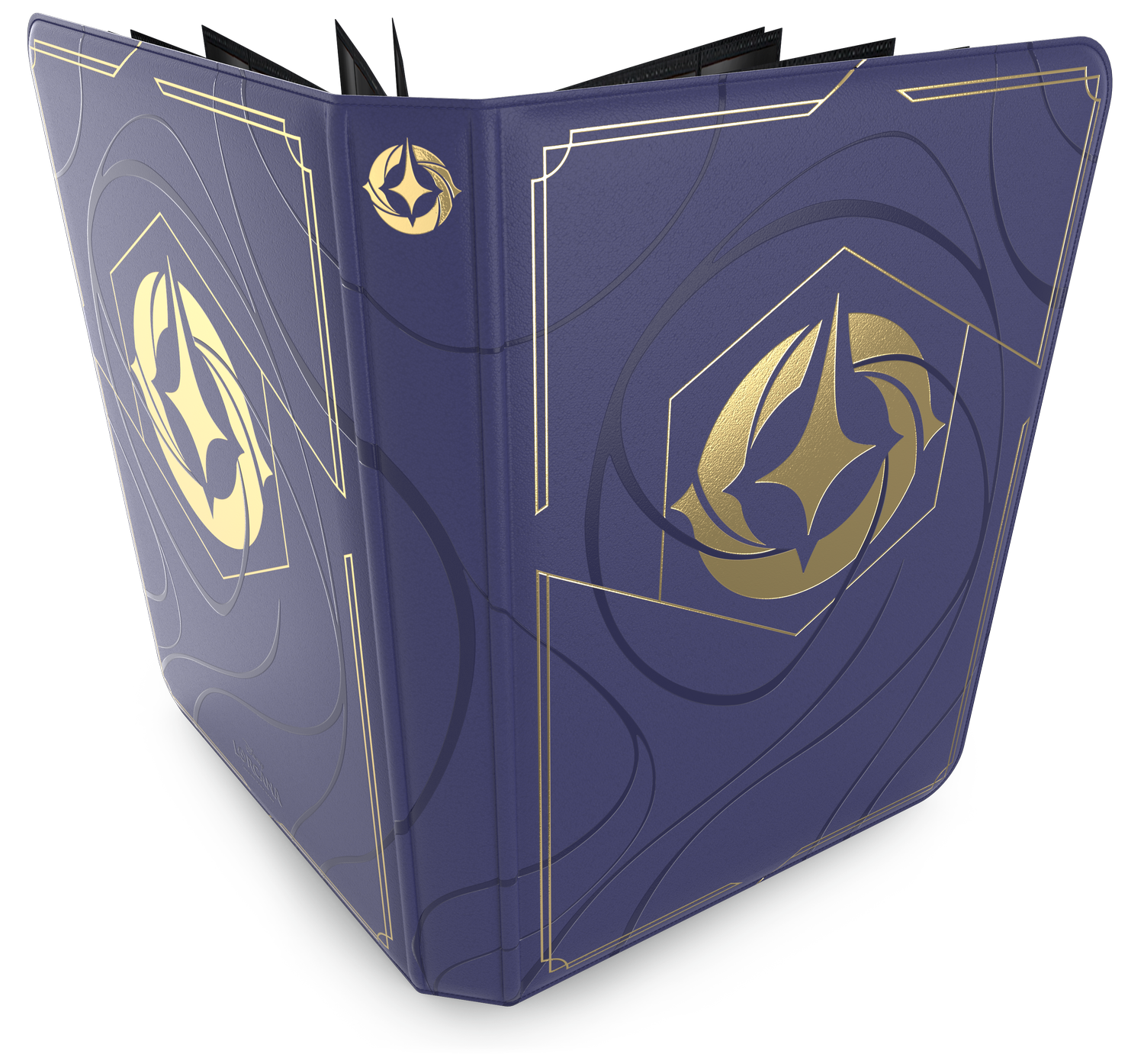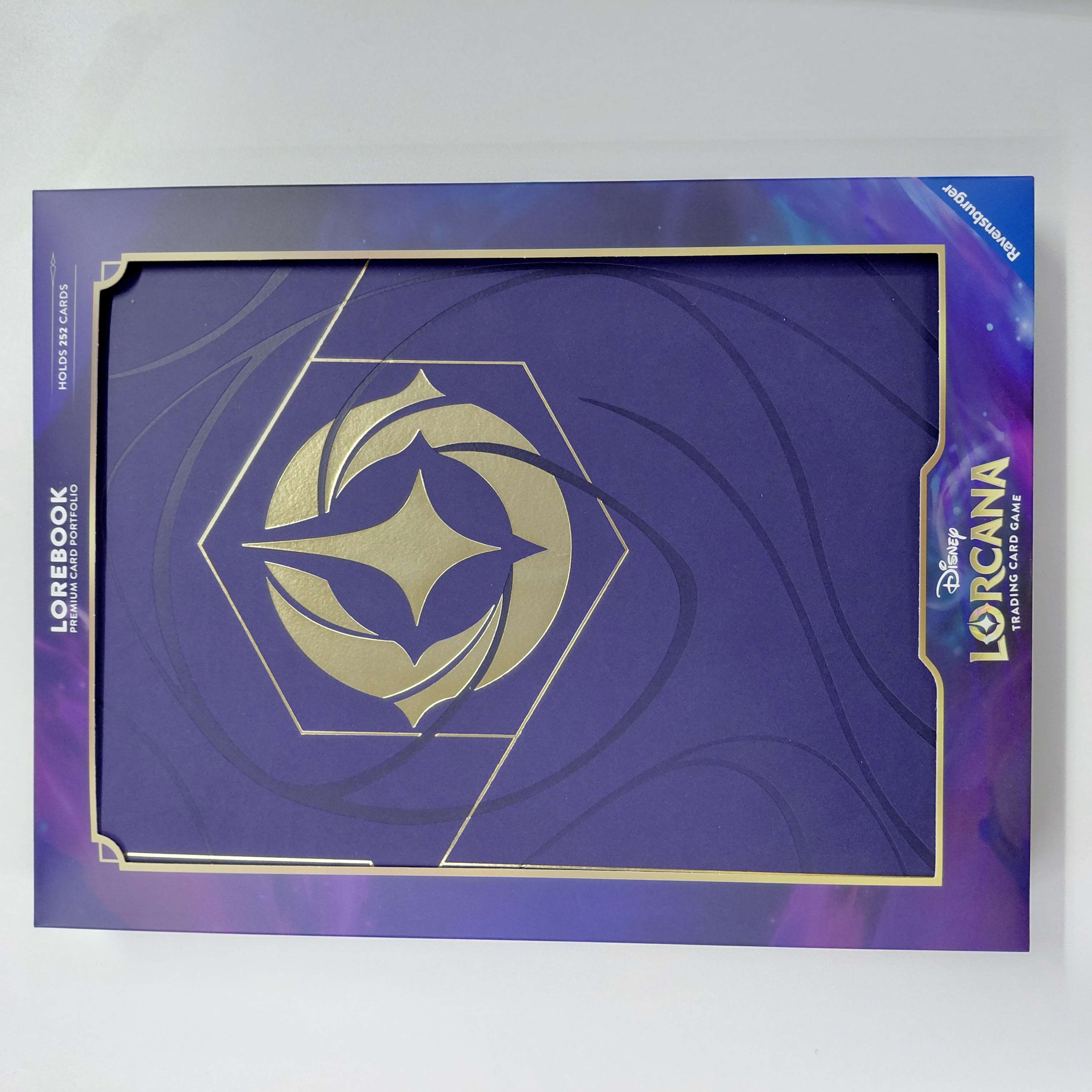 Contents Ravensburger has partnered with Ultra PRO for a premium deck box and premium card portfolio. The card portfolio has 14 double-sided 9-pocket pages with 252 pockets for standard-sized cards. The design features a deep purple with ink lines around the Disney Lorcana lore and inkwell symbol, similar to a card back.