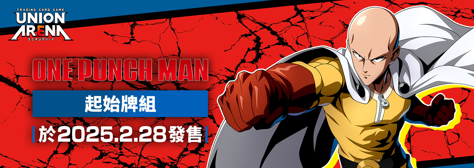 『一拳超人』的粉絲們先從購買起始牌組開始吧! 本商品包含由50張卡牌構成的牌組和3張行動值卡, 可以馬上開始遊玩UNION ARENA。 『一拳超人』的粉絲們由此入門吧!